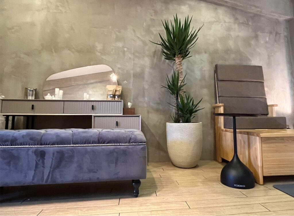 「よもぎでととのう」をコンセプトに、国産・無農薬・無着色・規定農家の手摘みの食べられるほどに安全で安心な上質なよもぎのみを使ったよもぎ蒸しサロン。オリジナルのヒノキ椅子、マントが特徴。
